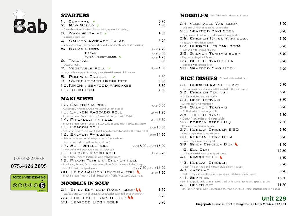 Bab is a hidden gem tucked away in the Kingspark Business Centre at New Malden, a hub for delicious food options. With open doors every day of the week, Bab accommodates all dining preferences—takeout, delivery, or dine-in. The atmosphere is casual, making it ideal for intimate solo dining sessions or family meals. Located just off the Kingston Road, it’s easy to drop by for lunch or dinner during the week or on weekends. The restaurant has quickly garnered a loyal following thanks to its authentic recipes and attention to detail. It’s not just a meal; it’s an experience. Guests can enjoy the comfort of hearty dishes like spicy beef ramen or the delightfully savory Korean fried chicken. The friendly staff adds to Bab's charm, making every visit feel like coming home to a family meal. With kids-friendly options, it’s a fantastic choice for families looking to explore Korean and Japanese flavors. The nearby business center also lends a sense of community, with many locals making Bab their go-to spot for tasty, affordable eats. Bab stands out as a must-try destination for anyone in the area.